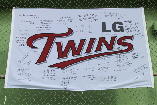 선수단은 훈련장 한켠에 자신들의 각오를 직접 적은 대형 깃발을 붙여놨다. 쓰러질 것 같이 힘든 순간, 선수들의 자필로 쓴 각오를 바라보며 젖 먹던 힘까지 짜낼 수 있을까. 여기에 LG의 2013 시즌 운명이 달려있다고 해도 과언이 아니다.