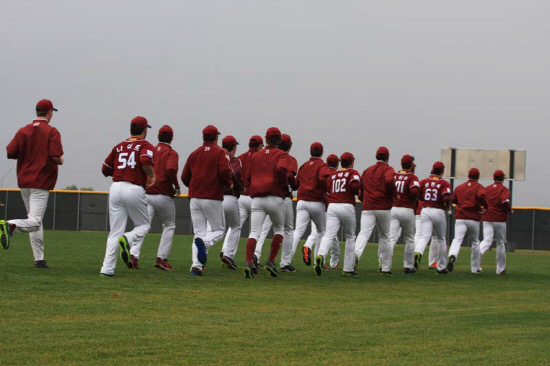 미국 애리조나 피닉스에 차려진 넥센 히어로즈 스프링캠프. 히어로즈 선수들이 훈련에 앞서 러닝을 하고 있다. 사진제공=넥센 히어로즈