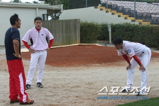 이 감독은 "우리가 오키나와로 들어가는 것이 18일이다. 하프 피칭에 들어간 송은범이나 채병용은 따뜻한 곳에서 몸만들기를 계속하면 20일 이후엔 실전에서 2∼3경기 정도는 던질 수 있을 것이다"라고 했다.