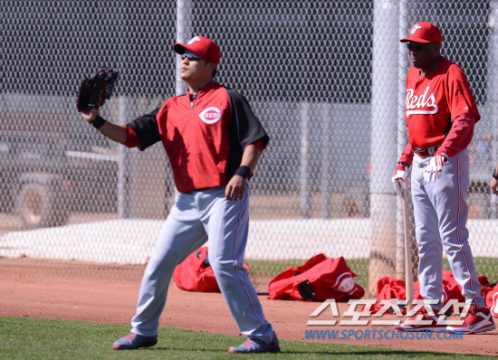 이어진 훈련은 외야 수비 훈련. 올시즌 신시내티는 추신수를 1번-중견수로 활용하겠다고 천명한 상태. 중견수는 그간 우익수로 뛰어온 그에겐 낯선 자리다. 메이저리그서 중견수로 고작 10경기에 나섰을 뿐이다.