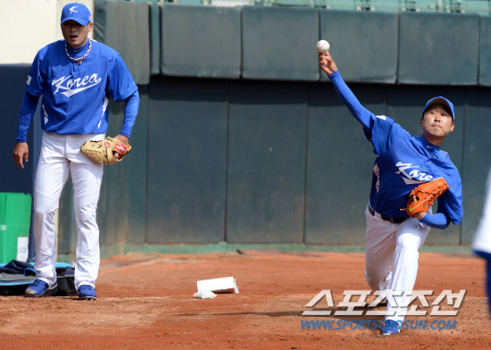 2013 월드베이스볼클래식 한국 대표팀이 14일 전지훈련지인 대만 자이현 도류구장에서 훈련을 실시했다. 윤석민과 서재응이 불펜피칭을 하고 있다. 도류(대만)=허상욱 기자 wook@sportschosun.com