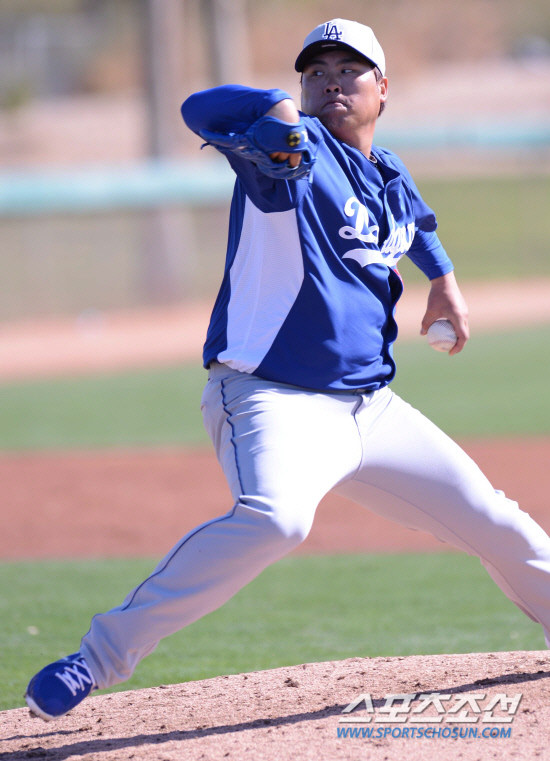 'LA 몬스터' 류현진이 20일(한국시각) 미국 애리조나주 글렌데일의 카멜백랜치에서 진행중인 LA다저스의 스프링캠프에서 처음 라이브피칭을 소화했다. 현지 언론의 이목이 집중됐고, 다저스의 돈 매팅리 감독과 릭 허니컷 투수코치, 구단주 특별고문으로 스프링캠프 지도에 나선 다저스의 전설 샌디 쿠팩스까지 류현진의 공 하나 하나에 시선을 모았다.
