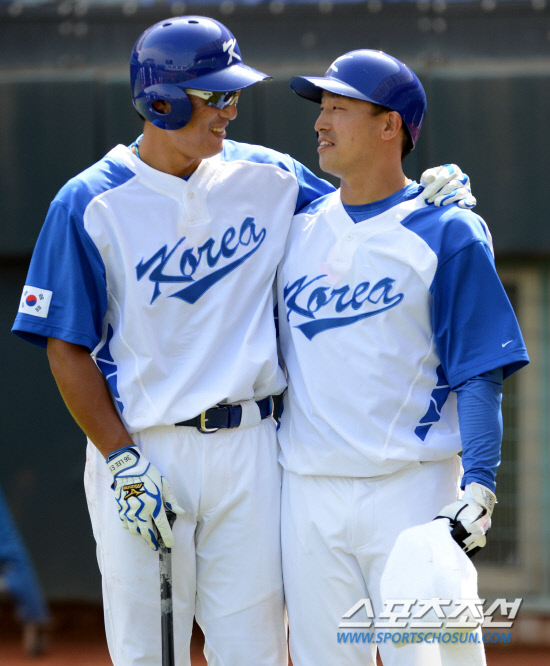 | 월드베이스볼클래식 대표팀 이승엽과 손아섭이 다정하게 웃으며 얘기나누고 있다. 도류(대만)=허상욱 기자 wook@sportschosun.com |