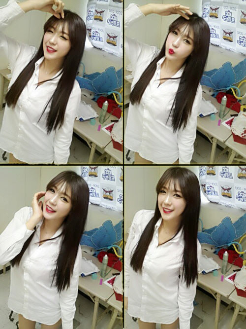 '얼짱' 치어리더 김연정이 흰색 와이셔츠만 입은 '하의 실종' 패션을 선보였다.