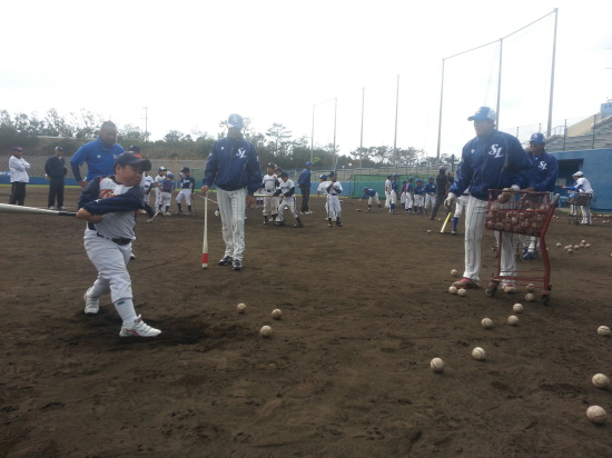 프로야구 삼성 라이온즈가 3일 일본 오키나와현 전지훈련 캠프지인 온나손 아카마구장에서 어린이 야구교실을 개최했다.
