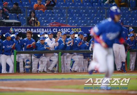 4일 오후 대만 타이중 인터컨티넨털 구장에서 2013 월드베이스볼클래식 1R 호주와 한국의 경기가 열렸다. 1회초 이용규가 볼넷을 얻어내자 덕아웃의 선수들이 환호하고 있다. 타이중(대만)= 김경민 기자 kyungmin@sportschosun.com