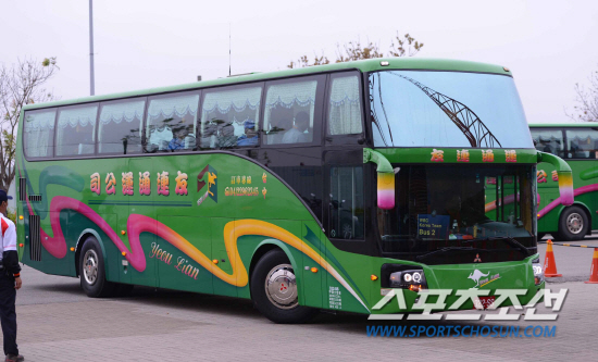 그렇다면 이동하는 동안 대표팀 버스 내부의 풍경은 어떨까. 선수들은 투수와 야수들이 각각 버스 두 대에 나눠타고 이동한다. 버스는 주최측이 전세를 낸 45인승이다. 한국으로 치면 한 줄에 좌우 2명씩, 4명이 앉는 직행버스와 비슷하고, 출입문이 앞과 중간 두 개다. 버스 두 대의 앞창에는 각각 '한국팀 버스1', '한국팀 버스2'라고 표기돼 있는데, 1호차에는 야수, 2호차에는 투수들이 탄다.