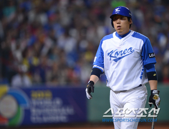 | 5일 오후 대만 타이중 인터컨티넨털 구장에서 2013 월드베이스볼클래식 1R 대만과 한국의 경기가 열렸다. 2회말 2사서 김현수가 루킹 삼진 아웃된 후 덕아웃으로 향하고 있다. 타이중(대만)= 김경민 기자 kyungmin@sportschosun.com /2013.03.05. |