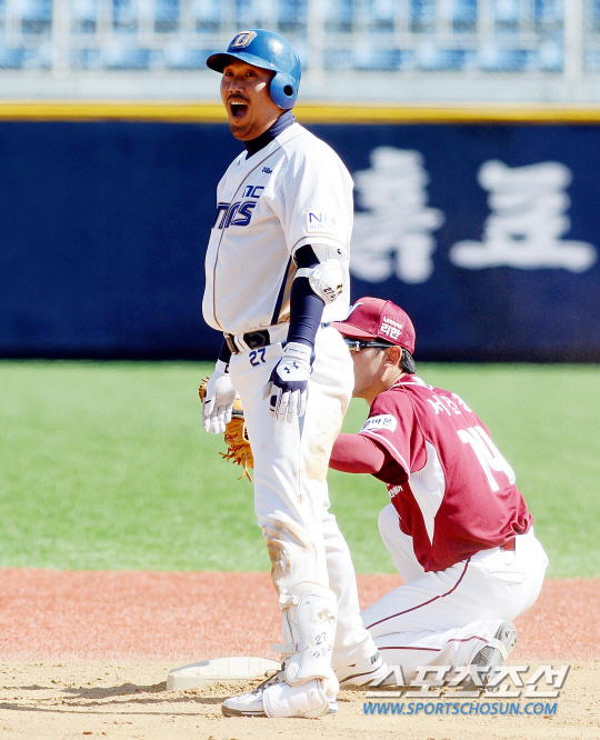 좌측 담장까지 향하는 공에 이호준은 2루까지 뛰었다. 인조잔디라 넘어지면 다칠까봐 속도를 조절했다. 하지만 펜스를 맞고 튀어나온 공은 정확히 넥센 좌익수 정수성의 글러브에 들어갔고, 이호준은 2루에서 가볍게 태그아웃됐다. 그래도 10일 마산구장을 찾은 4870명의 팬들은 이호준에게 뜨거운 박수를 보냈다. NC는 7대4 역전승을 거두며 첫 승을 신고했다.