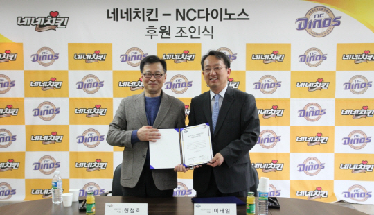 NC 다이노스가 네네치킨(㈜ 혜인식품, 대표이사 현철호)과 후원 협약신을 진행했다.