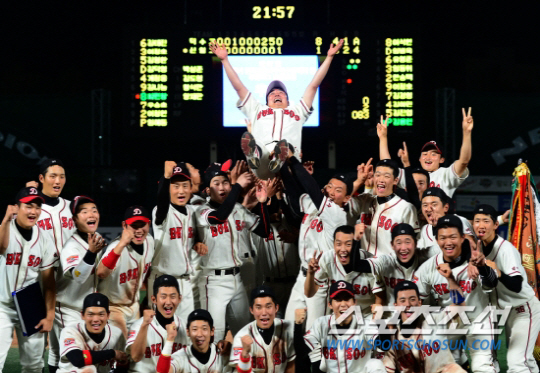 고교야구 주말리그가 시작된다. 사진은 지난해 8월 제67회 청룡기 전국 고교야구 선수권대회 겸 주말리그 왕중왕전에서 우승을 차지한 덕수고 선수단. 정재근 기자 cjg@sportschosun.com |