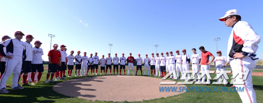 프로야구 기아 타이거즈 선수들이 8일 오전(한국시간) 미국 전지훈련의 마지막 일정을 마친후 선동열 감독과 미팅시간을 갖고 있다. 기아 선수들은 20여일동안 애리조나 서프라이즈 캔자스시티 로얄스 볼파크에 차려진 전지훈련장에서 구슬땀을 흘려왔다. 기아 타이거스는 이날 바로 일본 오키나와로 이동해 2차 전지훈련에 매진할 계획이다. 서프라이즈(애리조나)=최문영 기자 deer@sportschosun.com /2013.02.08/