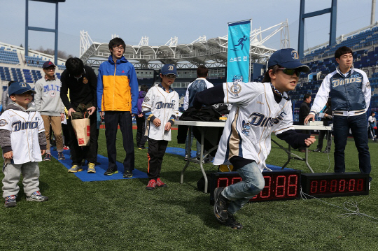 외야 그라운드에서 진행된 '스피드런' 행사에 참여한 어린이들. 사진제공=NC다이노스
