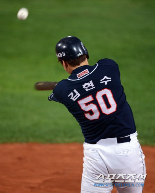 김현수는 20일 한화와의 경기에서 2-0으로 앞선 3회 2사 2루서 한화 선발 김혁민으로부터 중월 투런 홈런을 터뜨렸다. 볼카운트 3B1S에서 5구째 한복판 146㎞짜리 직구를 통타한 것이 가운데 펜스 뒤쪽 전광판을 때리는 대형홈런이 됐다. 비거리 130m. 한화는 지난 겨울 김응용 감독의 주문에 따라 대전구장 펜스를 뒤로 확장했다. 좌우측은 97m에서 100m, 가운데 펜스는 114m에서 122m로 멀어졌다.