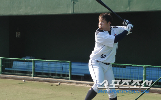 | 김현수가 2번에 배치됐다. 두산 전지훈련에서 타격연습을 하고 있는 장면. 사진=두산 베어스 제공 |