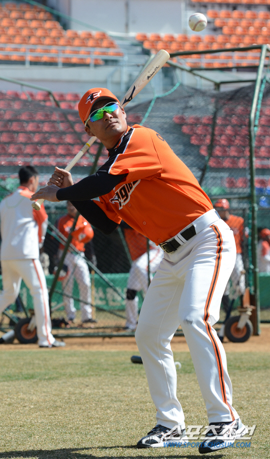| 10일 광주구장에서 열리는 2013 프로야구 시범경기 한화와 기아의 경기를 앞두고 한화 이종범 코치가 외야 수비훈련을 위해 펑고를 날리고 있다. 광주 =정재근 기자 cjg@sportschosun.com/2013.03.10/ |