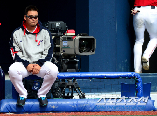 바람이 불어 조금 쌀쌀했지만 봄 햇살이 따사로왔다. 그 햇살 속에 KIA 선동열 감독이 서있다. 환한 햇살처럼 표정이 화창하다. 관중석에서 음식을 먹는 팬들에게 "맛있어요"라고 깜짝 인사를 던질 정도. 덕아웃 앞에서 취재진과 대화를 나누고 있던 그의 눈길을 따라가봤다. 1루측 불펜에서 멈췄다. 김진우가 있다. 불펜 피칭에 한창이다. "쟤들(윤석민 김진우)이 던지니까 그래도 조금 다행이네…." 선 감독의 말이다. 걱정이 많았다. 개막 전 약속을 한듯 어깨가 좋지 않았던 토종 에이스. 시즌 초 공백이 예상됐다. 하지만 예상보다 회복이 빠르다.