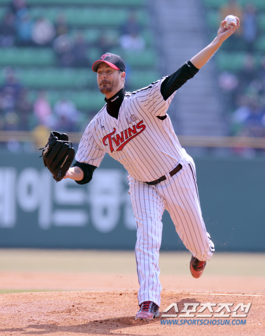 24일 오후 서울 잠실야구장에서 2013 프로야구 시범경기 두산 베어스와 LG 트윈스의 경기가 열렸다. LG 선발투수 주키치가 두산 타자들을 상대로 힘차게 볼을 던지고 있다. 잠실=김경민 기자 kyungmin@sportschosun.com / 2013.03.24.