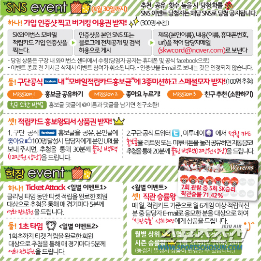 SK는 27일부터 SK 와이번스 모바일 적립 카드(이하 모바일 적립 카드) 런칭 기념 이벤트를 실시한다.