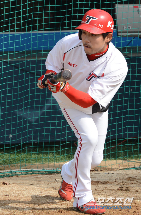 | 9일 광주구장에서 열리는 한화와 기아의 2013 프로야구 시범경기를 앞두고 기아 이용규가 번트훈련을 하고 있다. 광주=정재근 기자 cjg@sportschosun.com/2013.03.09/ |