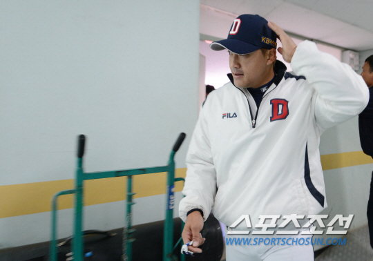 두산 베어스와 LG 트윈스의 2013 프로야구 경기가 7일 잠실야구장에서 열렸다. 지난 5일 잠실 경기에서 문승훈 주심에게 과격한 항의로 퇴장명령을 받았던 홍성흔이 경기전 심판실을 찾아 사과의 시간을 가졌다. 잠실=최문영 기자 deer@sportschosun.com /2013.04.07/ |