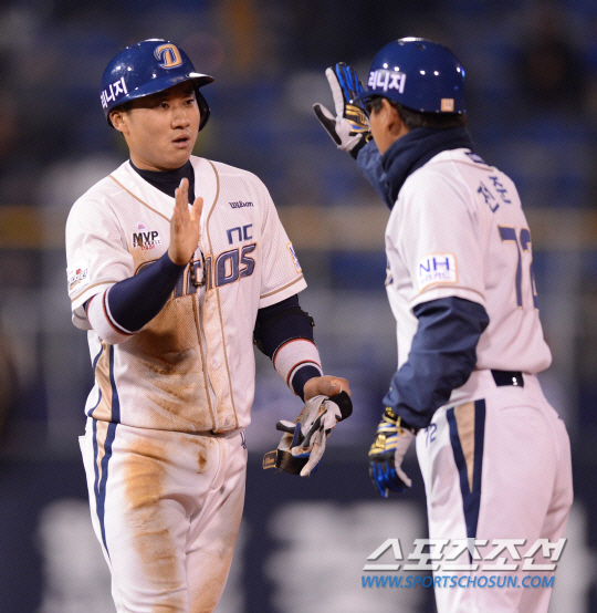 김태군은 NC의 역사에 남을 기록의 주인공이 되었습니다. NC는 첫 경기인 4월 2일 롯데전에서 4:0으로 완봉패하며 득점에 실패했지만 이튿날 롯데와 다시 만나 5회말 팀 역사상 첫 득점이자 첫 선취점을 얻었습니다. 김태군이 0:0으로 맞선 5회말 1사 3루에서 롯데 선발 고원준의 3구를 받아쳐 적시타를 터뜨린 것입니다. NC는 아쉽게도 롯데에 3:2로 역전패했지만 김태군의 팀 첫 타점에 힘입은 첫 득점 및 첫 선취점 기록은 두고두고 남을 것입니다.