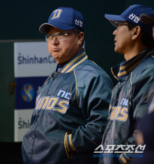4강 진출의 시험대에 오른 LG와 창단 첫 승에 목이 마른 NC가 9일 잠실 야구장에서 만났다. NC는 초반 어이없는 내야진의 실책으로 점수를 내주며 어려운 경기를 펼친 가운데 첫 승을 다음 기회로 미뤘다. 김경문 감독이 경기중 어두운 표정을 짓고 있다. 잠실=조병관기자 rainmaker@sportschosun.com