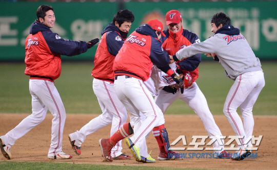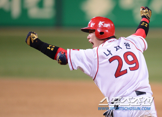 나지완은 이번에도 변화구를 고집했다. 상대의 수에 넘어가지 않고, 또다시 반대로 간 것이다. 나지완의 노림수는 정확히 맞아떨어졌다. 스트라이크존 바깥쪽으로 떨어지는 슬라이더에 정확히 타이밍을 맞췄다. 결과는 중견수 키를 넘기는 끝내기 2루타였다.