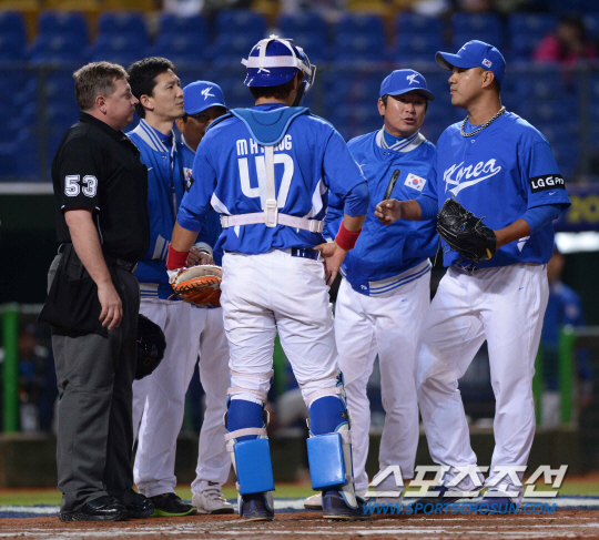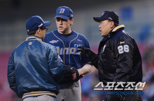 외국인 선수인 에릭에게 주의를 주기 위해서였다. 에릭은 영문을 모른 채, 마운드 앞으로 걸어나왔다. 잠시 뒤 최일언 투수코치까지 나와 원현식 심판위원과 대화를 나눴다.
