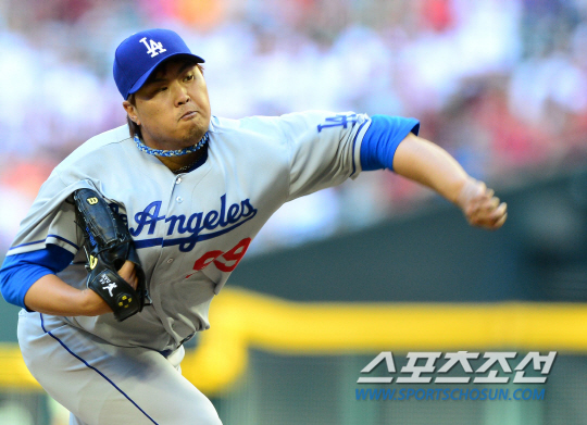 '코리안몬스터' 류현진이 메이저리그 2연승에 도전했다. LA다저스 류현진은 14일(한국시간) 미국 애리조나주 피닉스의 체이스필드에서 열린 애리조나 다이아몬드백스(D-백스)와 원정 경기에 선발로 출전 했다. 마운드에서 류현진이 D-백스 선수들을 상대로 힘차게 볼을 던지고 있다.