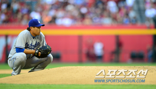 '코리안몬스터' 류현진이 메이저리그 2연승에 도전했다. LA다저스 류현진은 14일(한국시간) 미국 애리조나주 피닉스의 체이스필드에서 열린 애리조나 다이아몬드백스(D-백스)와 원정 경기에 선발로 출전 했다. 4회 홈런 위기에서 심판들의 비디오 판독을 기다리고 있는 류현진.
