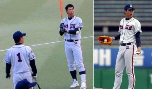 사진은 동산고 시절 에이스 투수 겸 4번 타자로 활약 했을 때의 류현진의 모습.