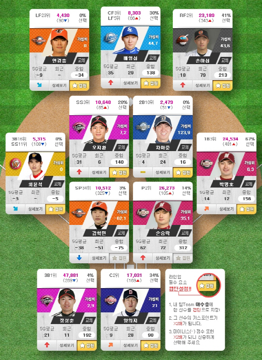 3년차를 맞은 프로야구 통합포인트제 카스포인트가 야구팬들을 위해 카스포인트 라인업을 만들어 큰 즐거움을 선사하고 있다. 카스포인트 라인업은 선수평가 시뮬레이션인 카스포인트를 기반으로, 각각의 유저들이 각 포지션의 선수들을 직접 고르는 게임 방식이다. 매 경기 결과에 따라 선수들의 성적이 카스포인트 점수로 매겨지고, 이 점수들의 총합으로 최고 유저를 선정한다.