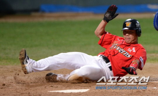 SK 정근우가 아군까지 속이는 주루플레이로 1득점을 했다. 정근우는 17일 포항 삼성전서 주루코치가 말리는 가운데서도 홈을 파고들어 득점하는 기민한 플레이를 선보였다.