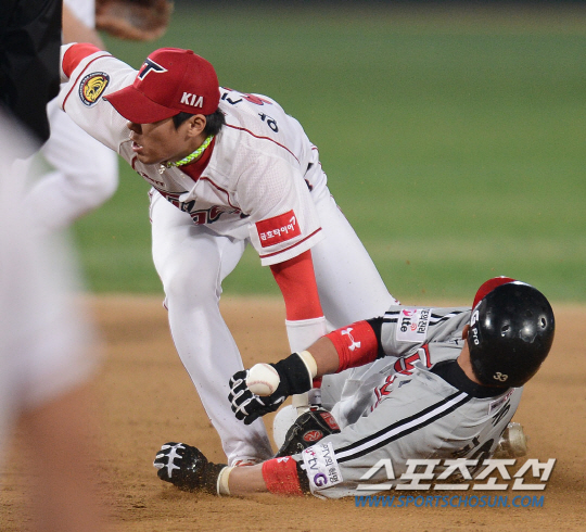 LG 트윈스와 KIA 타이거즈의 2013 프로야구 경기가 17일 광주구장에서 열렸다. 7회초 무사 1루 LG 정성훈 타석 때 1루주자 박용택이 2루도루에 성공하고 있다. 광주=정재근기자 cjg@sportschosun.com/2013.04.17/ |