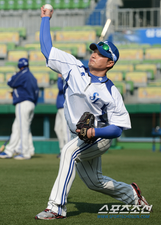 롯데 자이언츠와 삼성 라이온즈의 2013 프로야구 경기가 19일 대구구장에서 열리는 가운데 삼성 오승환이 그라운드에 나와 전력으로 피칭을 하며 훈련을 하고 있다. 대구=정재근기자 cjg@sportschosun.com/2013.04.19/
