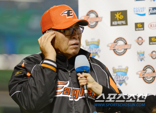 | 한화는 22일부터 25일까지 올시즌 첫 나흘간의 휴식을 갖는다. 이 기간 한화는 마운드 정비가 중요한 과제다. 지난 18일 NC전 승리후 인터뷰를 하고 있는 김응용 감독. 대전=허상욱 기자 wook@sportschosun.com |