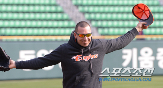 | 한화 외국인 투수 이브랜드가 삭발 대열에 합류했다. 지난 19일 짧은 스포츠형 머리를 한 채 잠실구장에 나타났다. 잠실=최문영 기자 deer@sportschosun.com |