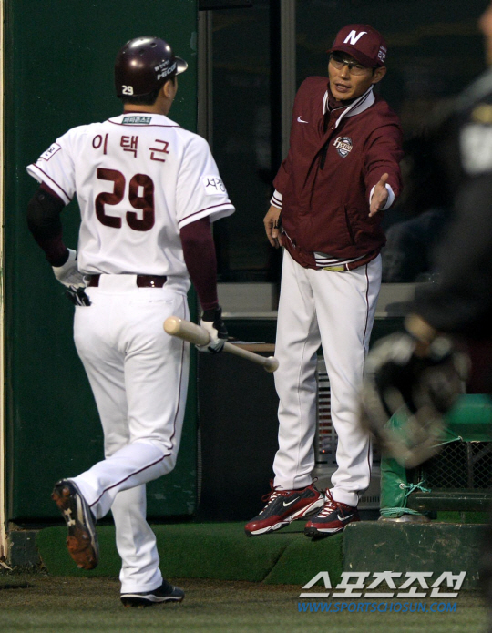 2013 프로야구 넥센과 두산의 경기가 25일 목동구장에서 열렸다. 넥센 이택근이 1회말 좌월 동점 솔로홈런을 치고 염경엽 감독과 기쁨을 나누고 있다. 목동=허상욱 기자 wook@sportschosun.com