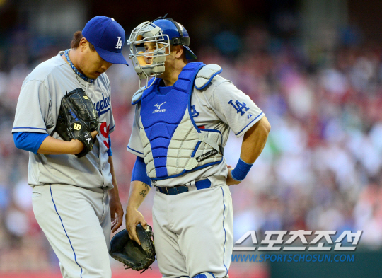 류현진은 호투했다. 하지만 한 차례 온 고비를 넘지 못했다. 6회엔 포수 라몬 에르난데스와 호흡이 맞지 않는 아쉬운 모습도 보였다.