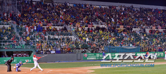 26일 광주 무등야구장에서 2013 프로야구 삼성과 KIA의 경기가 열렸다. 7회말 선두타자로 나선 KIA 이범호가 타격을 하고 있다. 시즌 1위를 달리고 있는 KIA는 평일임에도 불구하고 만원관중을 기록했다. 광주=김경민 기자 kyungmin@sportschosun.com