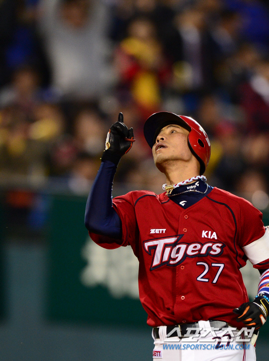 4월 30일 잠실야구장에서 열린 프로야구 두산과 KIA의 경기에서 KIA 김상현이 3회 시즌 2호 좌중월 투런포를 날렸다. 홈에 들어오며 세리머니를 펼치고 있는 김상현. 잠실=송정헌 기자 songs@sportschosun.com