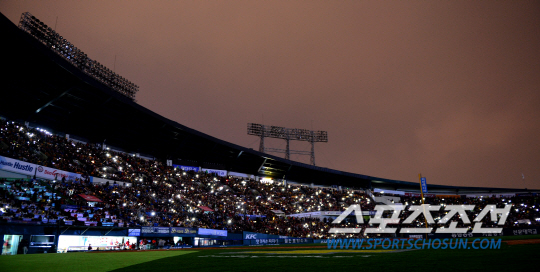 KIA가 5-3으로 앞선 채 5회말이 끝나고 클리닝타임을 이용해 관중석 이벤트가 펼쳐질 때 잠실구장 조명탑이 갑자기 눈을 감은 것이다.