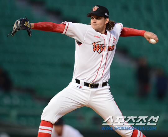 | SK 세든이 4일 대전 한화전에서 8이닝 3안타 무실점의 호투로 시즌 3승째를 따냈다. 정재근 기자 cjg@sportschosun.com |