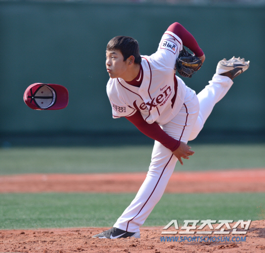 14일 오후 2013 프로야구 시범경기 한화 이글스와 넥센 히어로즈의 경기가 열렸다. 넥센 조상우가 한화 타자들을 상대로 힘차게 볼을 던지고 있다. 목동=김경민 기자 kyungmin@sportschosun.com / 2013.03.14.
