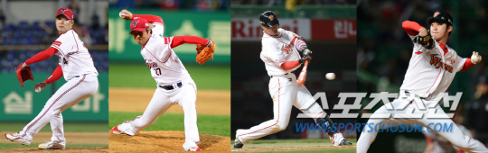 | KIA 송은범 신승현과 SK 김상현 진해수가 트레이드 이후 처음으로 맞대결을 펼친다. 스포츠조선DB |
