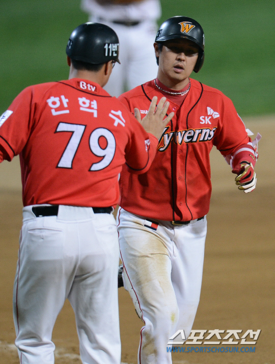 최 정은 14일 광주 KIA전에서 0-2로 뒤지던 8회초 1사 후 타석에 나와 볼카운트 2B에서 KIA 세 번째 투수 송은범이 던진 3구째 직구(시속 147㎞)를 받아쳐 우중간 담장을 넘는 비거리 125m짜리 대형 홈런을 날렸다. 바깥쪽 높은 코스로 들어온 송은범의 실투성 직구를 놓치지 않고 가볍게 밀어쳐 넘겼다.