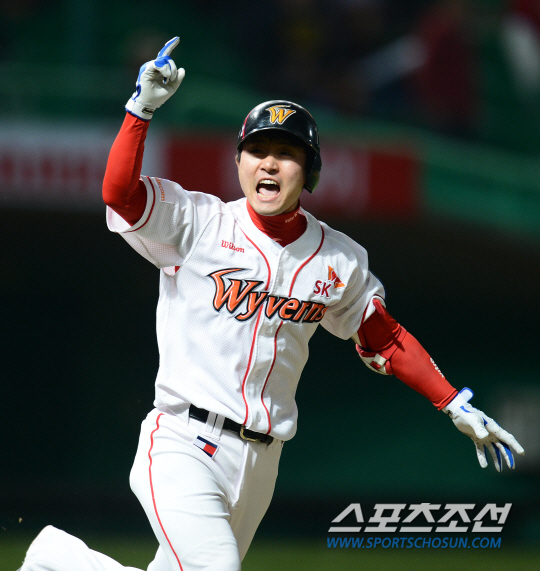 두산 베어스와 SK 와이번스의 2013 프로야구 경기가 8일 인천구장에서 열렸다. 9회말 1사 만루 SK 김성현이 끝내기 안타를 치고 환호하고 있다. 인천=정재근기자 cjg@sportschosun.com/2013.05.08/