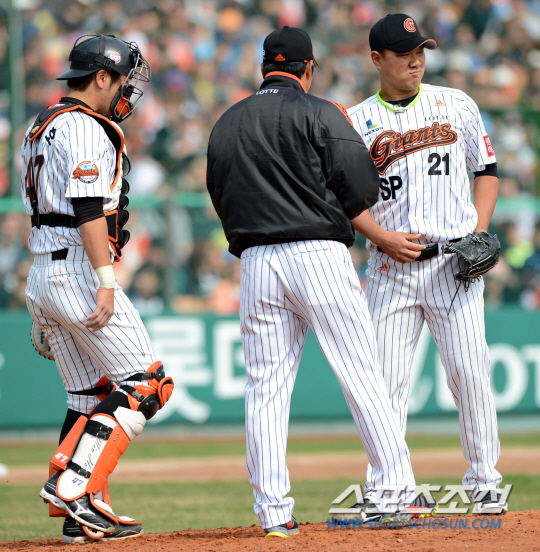 15일 부산 사직구장. 김 감독은 NC와의 홈경기를 앞두고 전날 경기를 복기하다 "올시즌 처음 마운드에 올라가 봤다"라고 말했다.