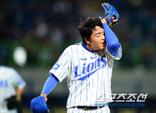 프로야구 삼성과 KIA가 10일 포항야구장에서 주말 3연전 첫 경기를 펼쳤다. 7회 장원삼에 이어 마운드에 오른 심창민이 KIA 나지완을 삼진으로 처리하며 위기를 넘겼다. 마운드를 내려오며 한 숨을 쉬고 있는 심창민. 포항=송정헌 기자 songs@sportschosun.com/2013.5.10 |